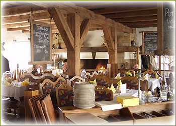 Der Gasthof mit dem Restaurant, in dem an kalten Tagen der Kamin unverzichtbar ist, bietet in der warmen Jahreszeit Biergartenidylle.